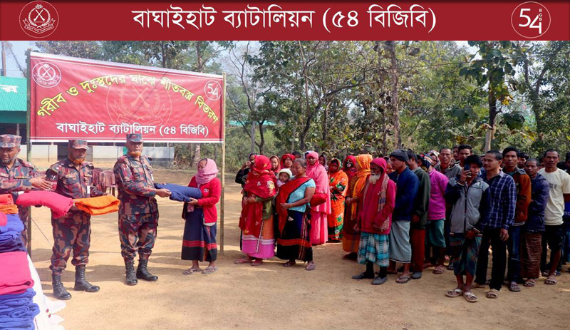 সীমান্তের অত্যন্দ্র প্রহরী শীতের মানবতার সেবায় কাজ করছে বাংলাদেশ বর্ডার গার্ড বাংলাদেশ (বিজিবি) সদস্যরা। খাগড়াছড়ি সেক্টরের অধীনে বাঘাইহাট ব্যাটালিয়ন (৫৪ বিজিবি) শতাধিক শীতার্ত পরিবারের মাঝে বিনামূল্যে শীতবস্ত্র বিতরণ করেছে।