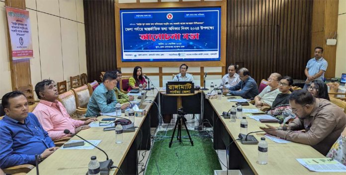 কর্তৃপক্ষের সকল দ্বার, খুলে দেবে তথ্য অধিকার এই শ্লোগানে এবং রাষ্ট্রের মূলধারায় তথ্য অধিকারের সংযুক্তি এবং সরকারী খাতের অংশগ্রহন নিশ্চিতকরণ এই প্রতিবাদ্যকে সামনে রেখে আন্তর্জাতিক তথ্য অধিকার দিবস উপলক্ষে রাঙ্গামাটিতে আলোচনা সভা অনুষ্ঠিত হয়েছে।