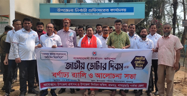 রবিবার (২মার্চ) সকালে দিবসটি উপলক্ষ্যে রামগড় উপজেলা প্রশাসন ও উপজেলা নির্বাচন অফিসের আয়োজনে র্যালি ও আলোচনা সভার আয়োজন করা হয়।