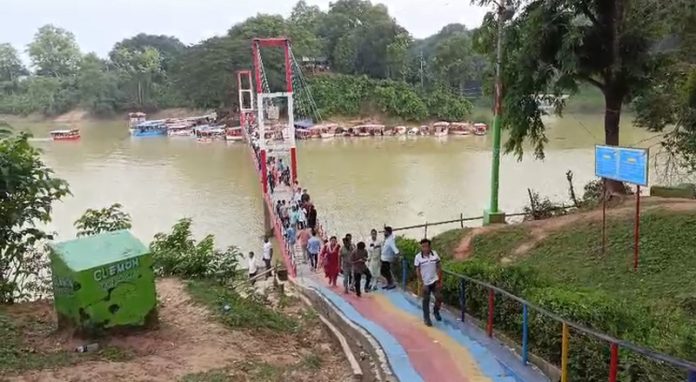 এদিকে সোমবার সকাল থেকেই জেলার সিম্বল খ্যাত ঝুলন্ত সেতু এলাকায় পর্যটকদের পদচারণায় মুখরিত হয়ে উঠেছে। অনেক পর্যটক এখানকার অপরূপ সৌন্দর্যমন্ডিত স্মৃতি ধরে রাখতে নিজ মুঠোফোনে সেলফি, ছবি এবং স্থির চিত্র ধরে রাখতে দেখা গেছে। আবার কেউ বা আনন্দ উল্লাসে মেতে উঠেছেন। আবার অনেক পর্যটক পর্যটন ঘাট থেকে ট্যুরিস্ট বোট ভাড়া করে স্বচ্ছ জলরাশি কাপ্তাই হ্রদের সৌন্দর্য অবলোকন করতে বেড়াতে বের হয়ে গেছেন।