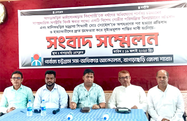 শনিবার (১৯ জুলাই) সকালে খাগড়াছড়ি প্রেসক্লাব হলরুমে এই সংবাদ সম্মেলন করেন সম-অধিকার আন্দোলনের নেতাকর্মীরা।