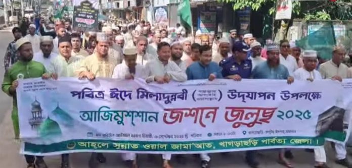 নানা আয়োজনে খাগড়াছড়িতে পবিত্র ঈদে মিলাদুন্নবী (সা.) পালিত হচ্ছে। এই উপলক্ষ্যে বর্ণাঢ্য জশনে জুলুছ র্যালি হয়েছে।