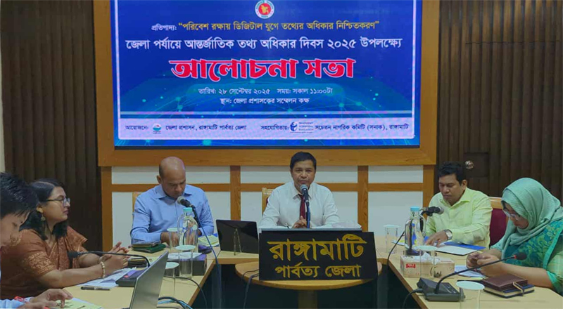 আন্তর্জাতিক তথ্য অধিকার দিবস উপলক্ষে রাঙ্গামাটিতে আলোচনা সভা অনুষ্ঠিত হয়েছে। জেলা প্রশাসনের আয়োজনে এবং টিআইবি-সনাকের সহযোগিতায় রবিবার সকাল ১১টায় জেলা প্রশাসক সম্মেলন কক্ষে অনুষ্ঠিত সভায় সভাপতিত্ব করেন, জেলা প্রশাসক মোহাম্মদ হাবিব উল্লাহ মারুফ।