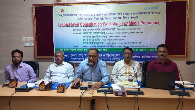 বান্দরবানে ১ লক্ষ ২১ হাজার শিশুকে টাইফয়েড টিকা দেয়া হবে। ইতোমধ্যে জেলায় ৬৫ শতাংশ শিশু অনলাইনে টিকার রেজিস্ট্রেশন সম্পন্ন করেছে।